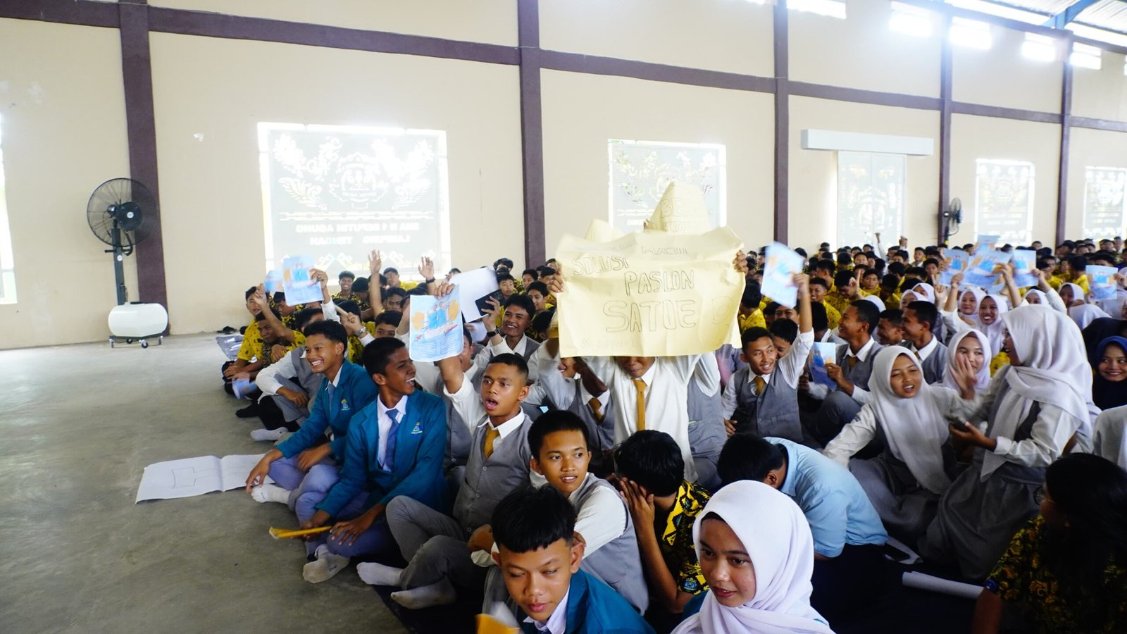 Antusiasme siswa SMAN 1 Seputih Agung mendukung paslonya masing-masing. (foto: ist)