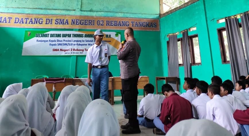Polisi sambangi SMAN 02 Rebang Tangkas. Tak tanggung-tanggung kapolsek langsung turun tangan. Seluruh siswa pun dikumpulkan. Ada apa?