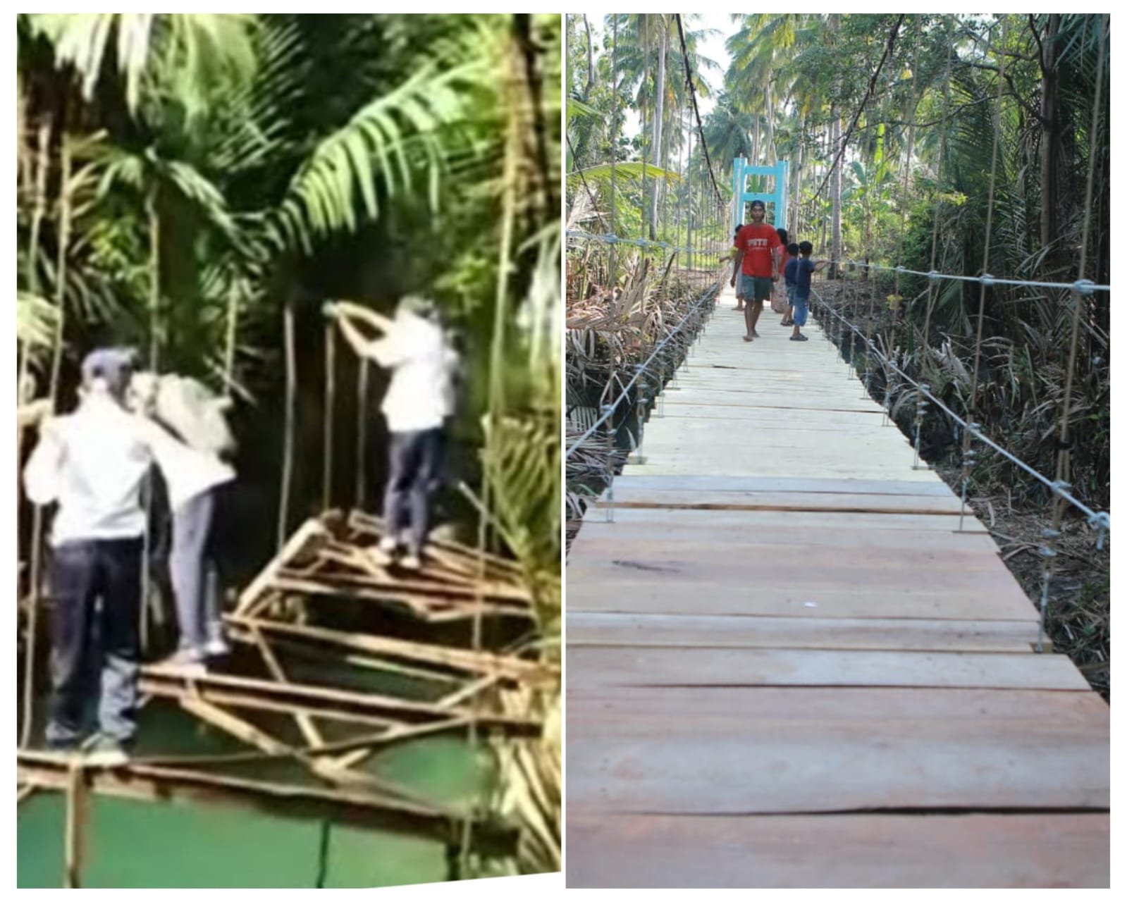 Tim gabungan dari berbagai lintas sukses memperbaiki jembatan gantung yang sempat viral via medsos di Pekon Tampang Muda, Kecamatan Pematang Sawa, Kabupaten Tanggamus.