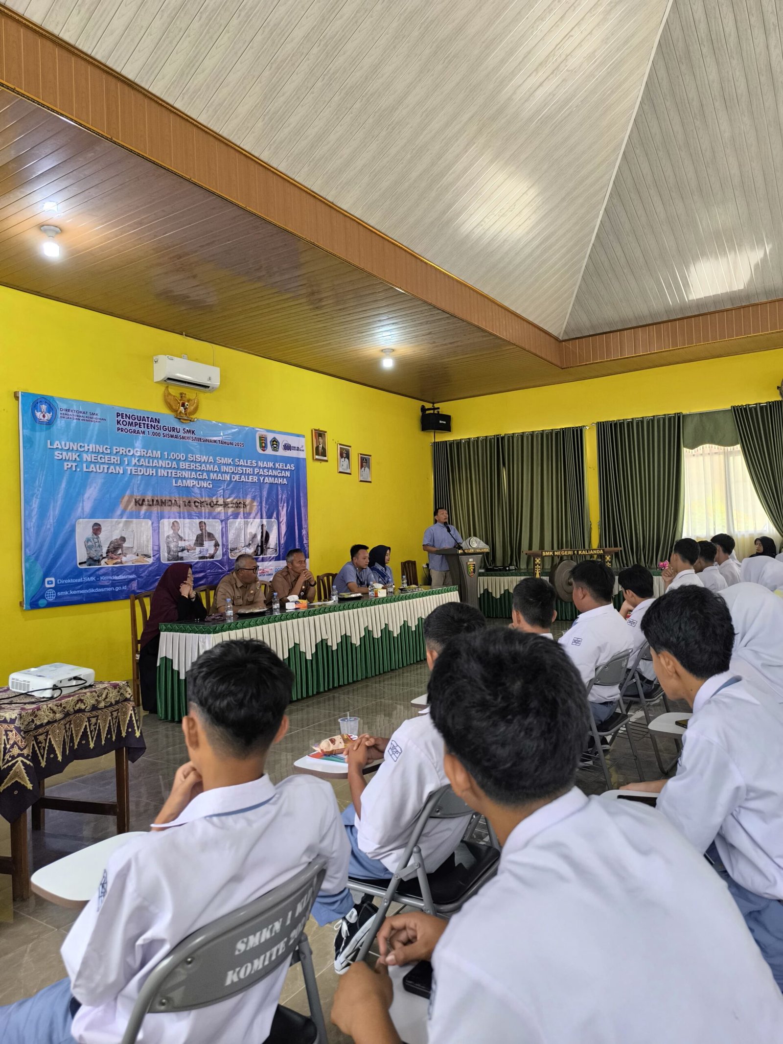Acara tersebut juga dihadiri oleh kepala sekolah SMKN 1 Kalianda yaitu Bapak H. Kalimo M.M, para guru, serta siswa kelas 10 dan 11. Program ini dilaksanakan dengan tujuan memberikan pembekalan kepada siswa, serta membuka peluang bagi siswa SMK agar siap menghadapi dunia kerja setelah lulus, khususnya di bidang penjualan (sales).